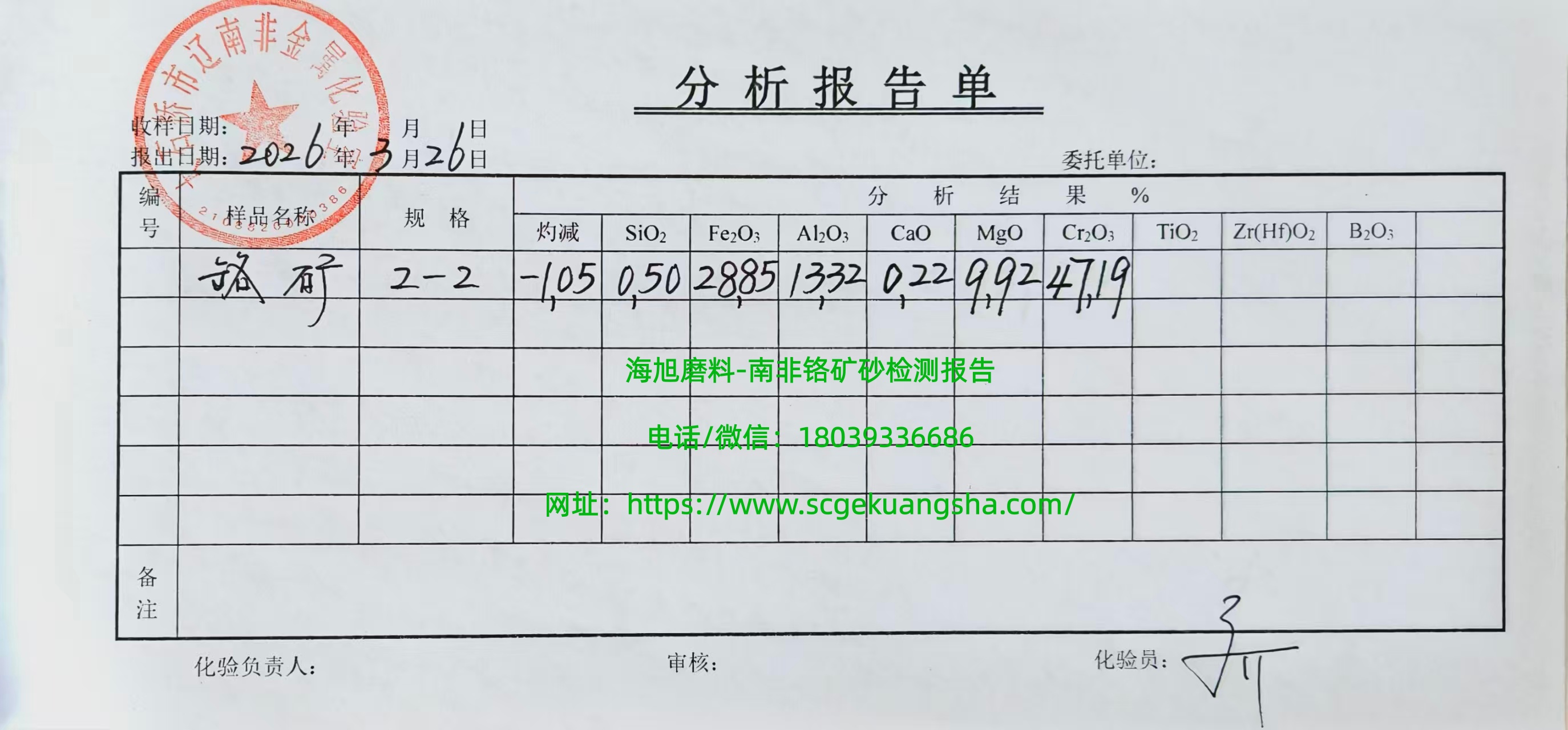 我们的铬矿砂在第三方的检测报告